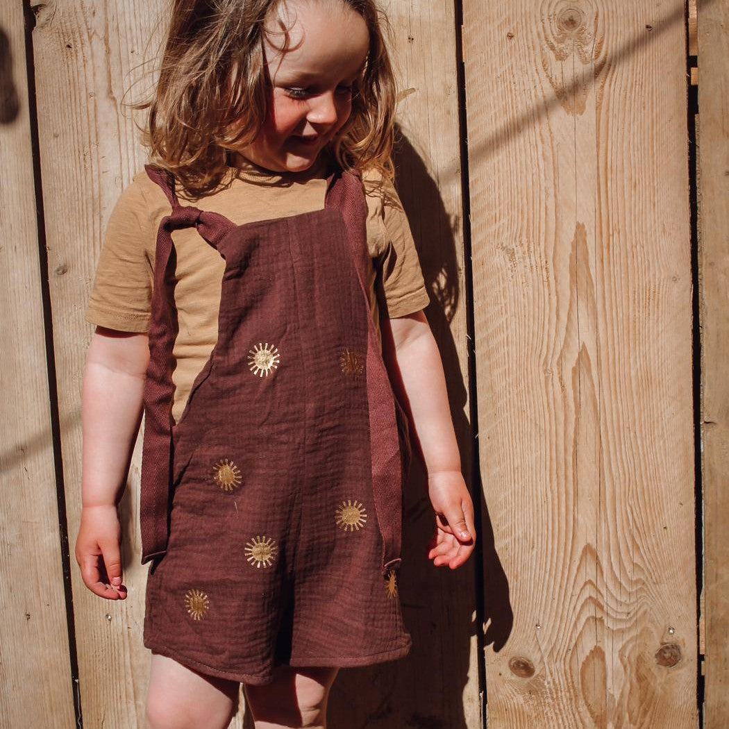BROWN AND GOLD SUN KIDS SHORT DUNGAREES