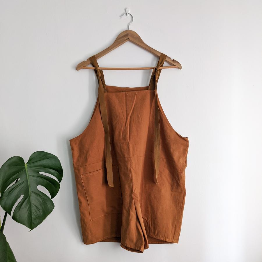 COTTON CANVAS ADULT SHORT DUNGAREES - Large Caramel