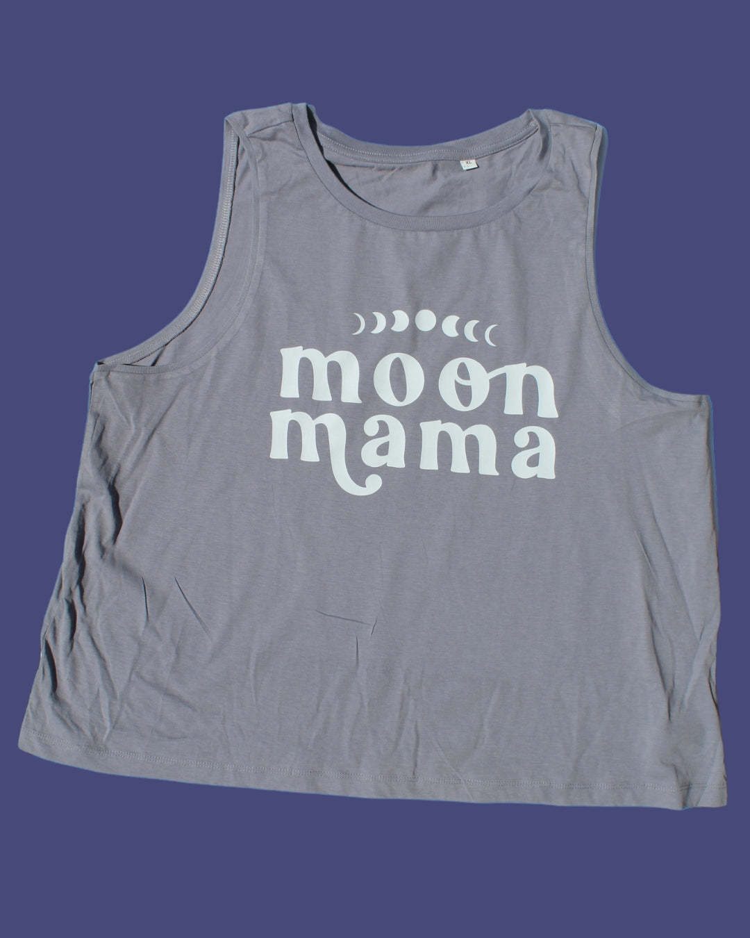 A lovely soft cotton vest, ladies size with moon mama slogan.
