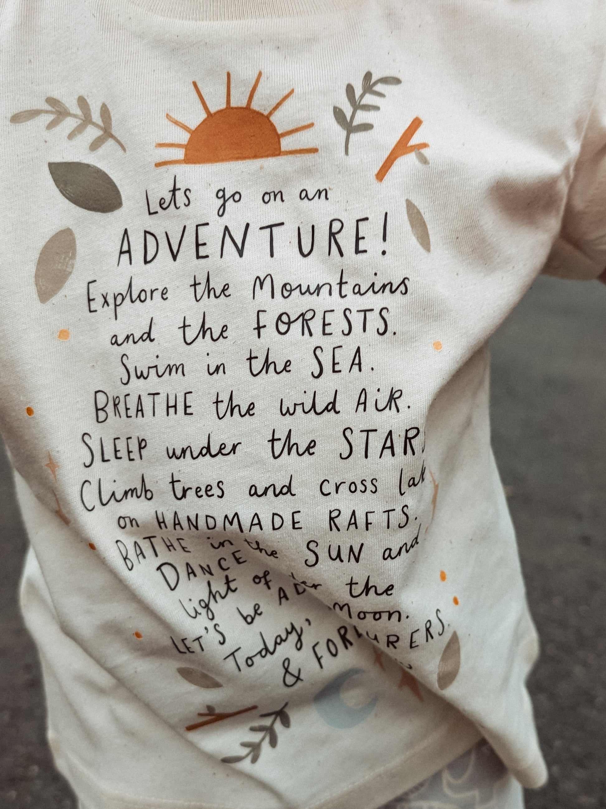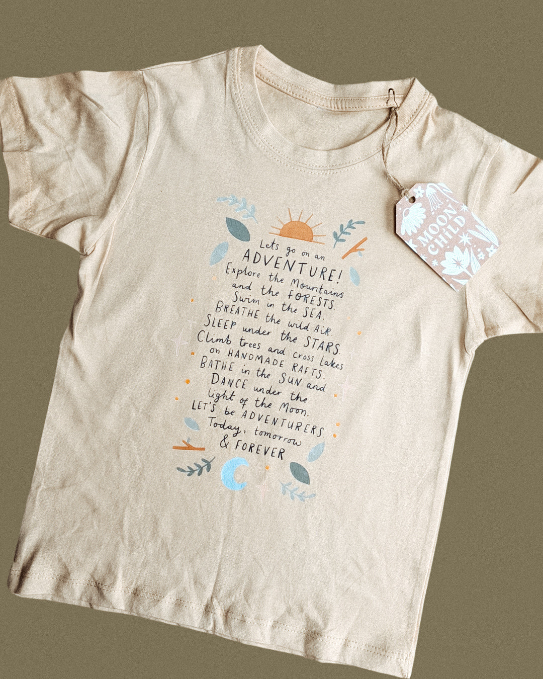 Our adventure mantra available for a limited time on light cream, nude or white tees!