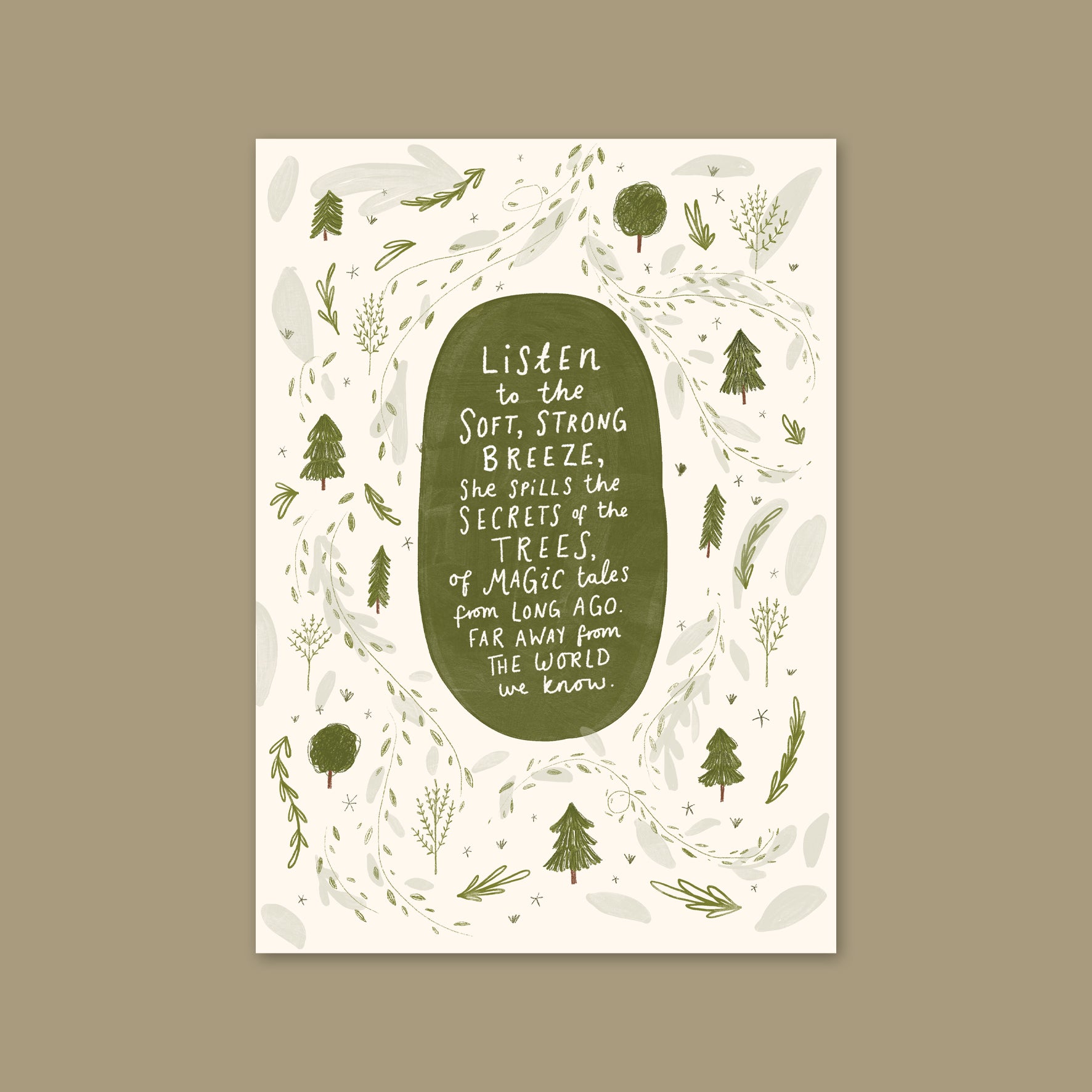 Listen to the soft strong breeze, she spills the secrets of the trees. Of magic tales from long ago, far away from the world we know.